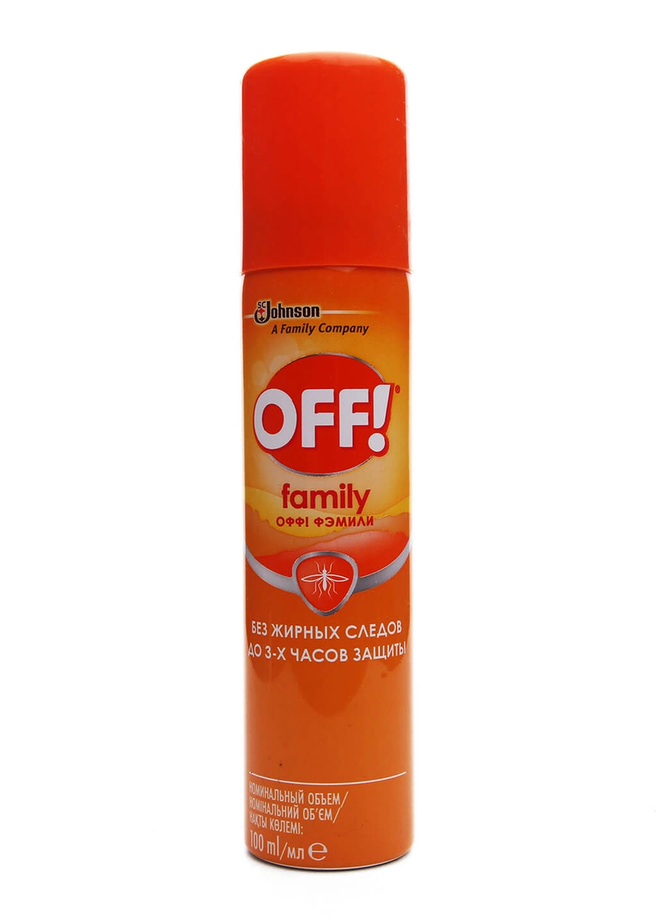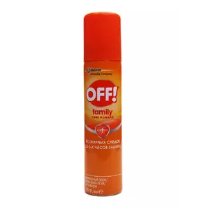 Аэрозоль ОFF! Family содержит 15% N, N – диэтилтолуамид, и обеспечивает длительную защиту от комаров, мошек, москитов и мокрецов. Дополнительным преимуществом этого формата является то, что он может наноситься как на кожу, так и на одежду.