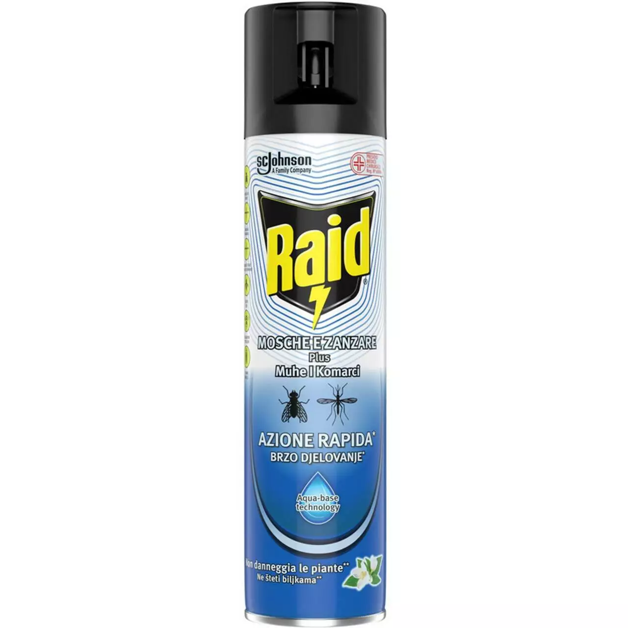 RAID против летающих насекомых активен против мух, комаров, ос и других насекомых, таких как моль, шершни и мошки. Оптимизированная формула средства на водной основе Aqua-Base позволяет применять аэрозоль во всех комнатах дома, не нанося вред растениям. Оказывает быстрое действие и предназначен для использования в помещениях. Может использоваться для непосредственного уничтожения насекомых и длительного эффекта.