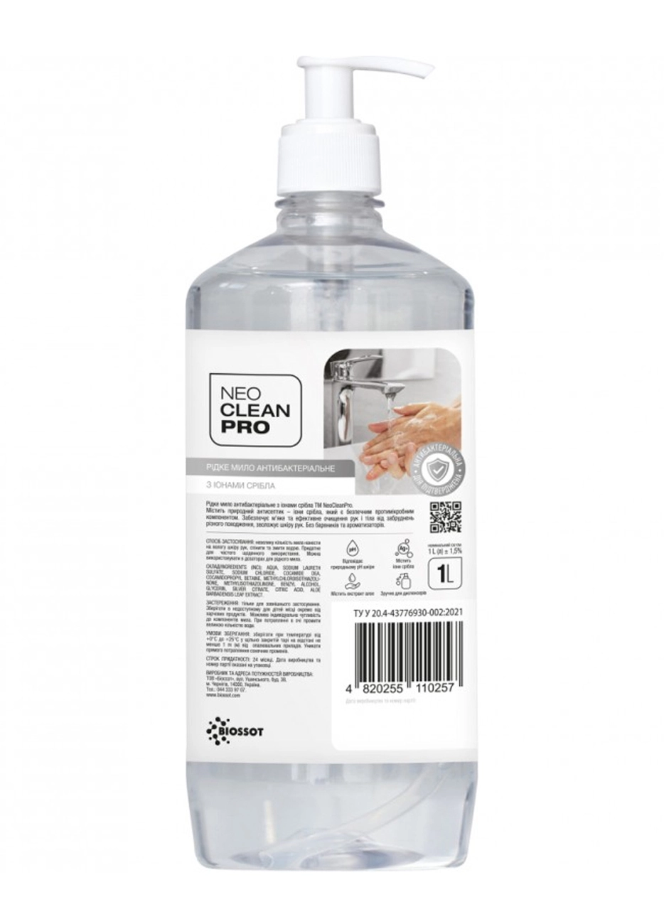 Антибактериальное жидкое мыло Biossot NeoCleanPro с ионами серебра с дозатором 1 л (4820255110257)