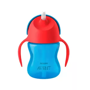 Чашка с трубочкой philips avent 9+, синий с красным (210 мл) (8710103781899)