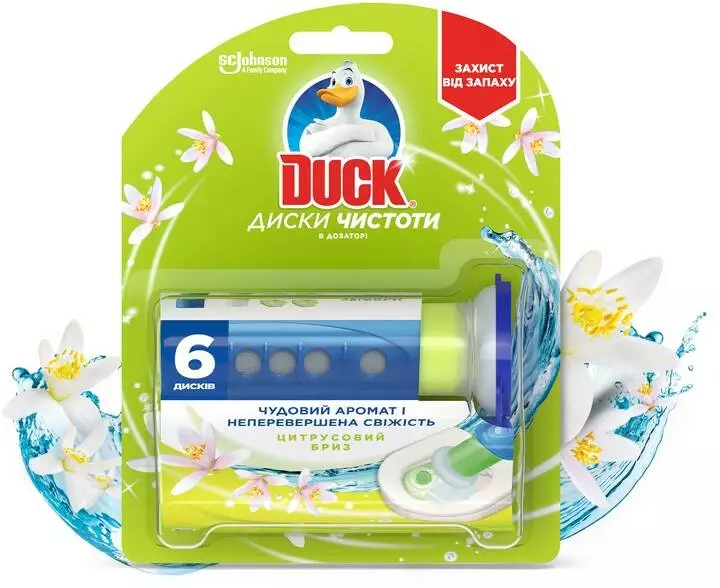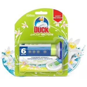 Туалетный блок Duck Диски Чистоты Цитрусовый бриз – идеальный выбор для освежения и очистки вашего туалета. Эти ароматные диски с приятным цитрусовым бризом обеспечат надежную защиту от неприятных запахов и загрязнений. Наслаждайтесь свежестью и чистотой в туалете благодаря Туалетному блоку Duck Диски Чистоты Цитрусовый бриз!