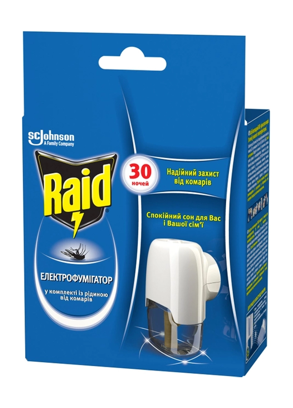Электрофумигатор от комаров Raid 30 ночей в комплекте с жидкостью (4620000430919)