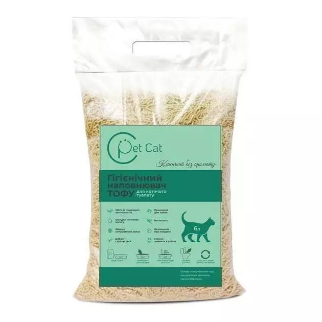 Гигиенический наполнитель Тофу "Pet Cat" Классический без аромата 6 л/2,5 кг, made in Ukraine UA