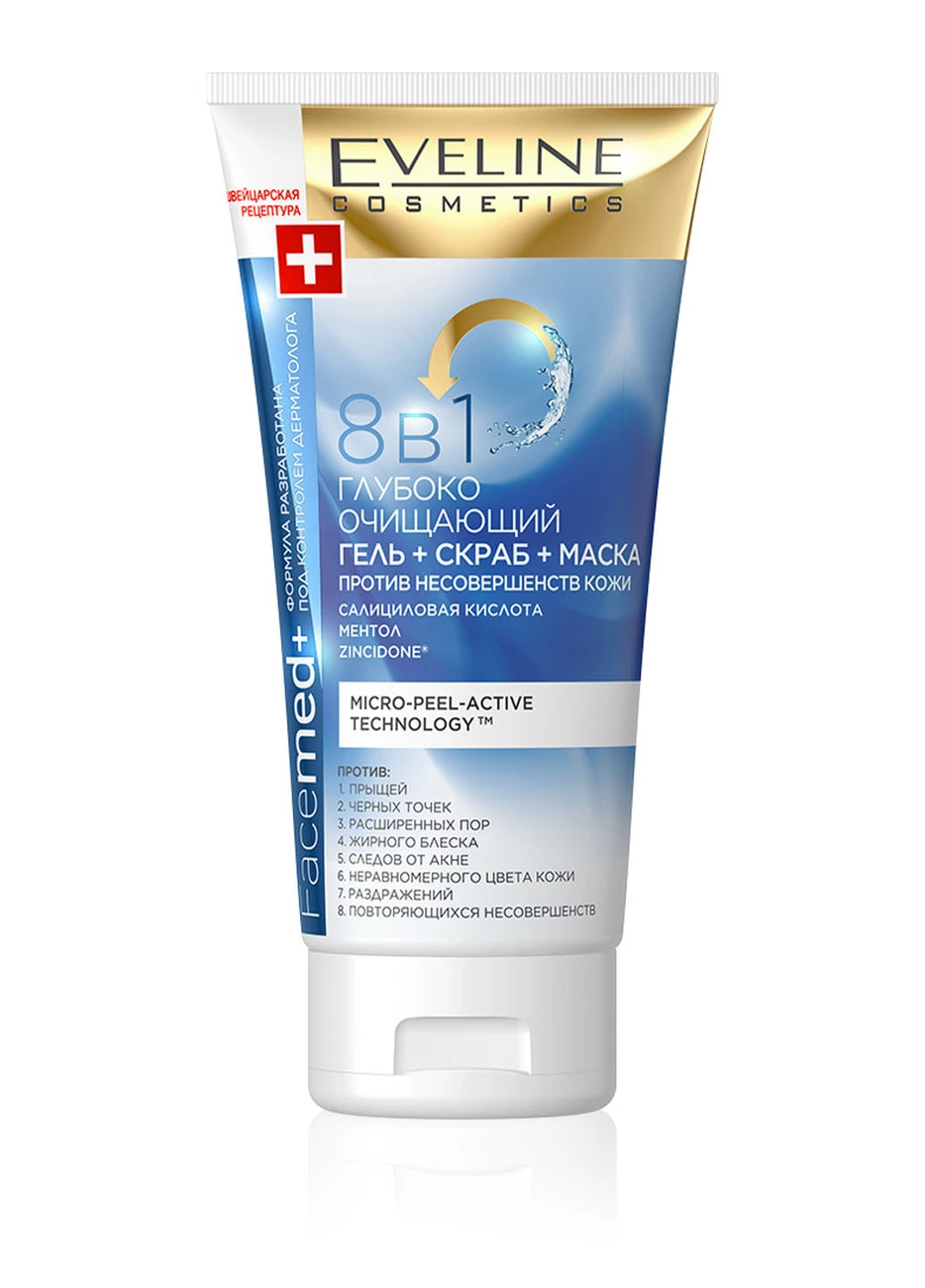 Глубоко очищающий гель+скраб+маска против несовершенства кожи Eveline 8 в 1 150 мл (5901761948943)
