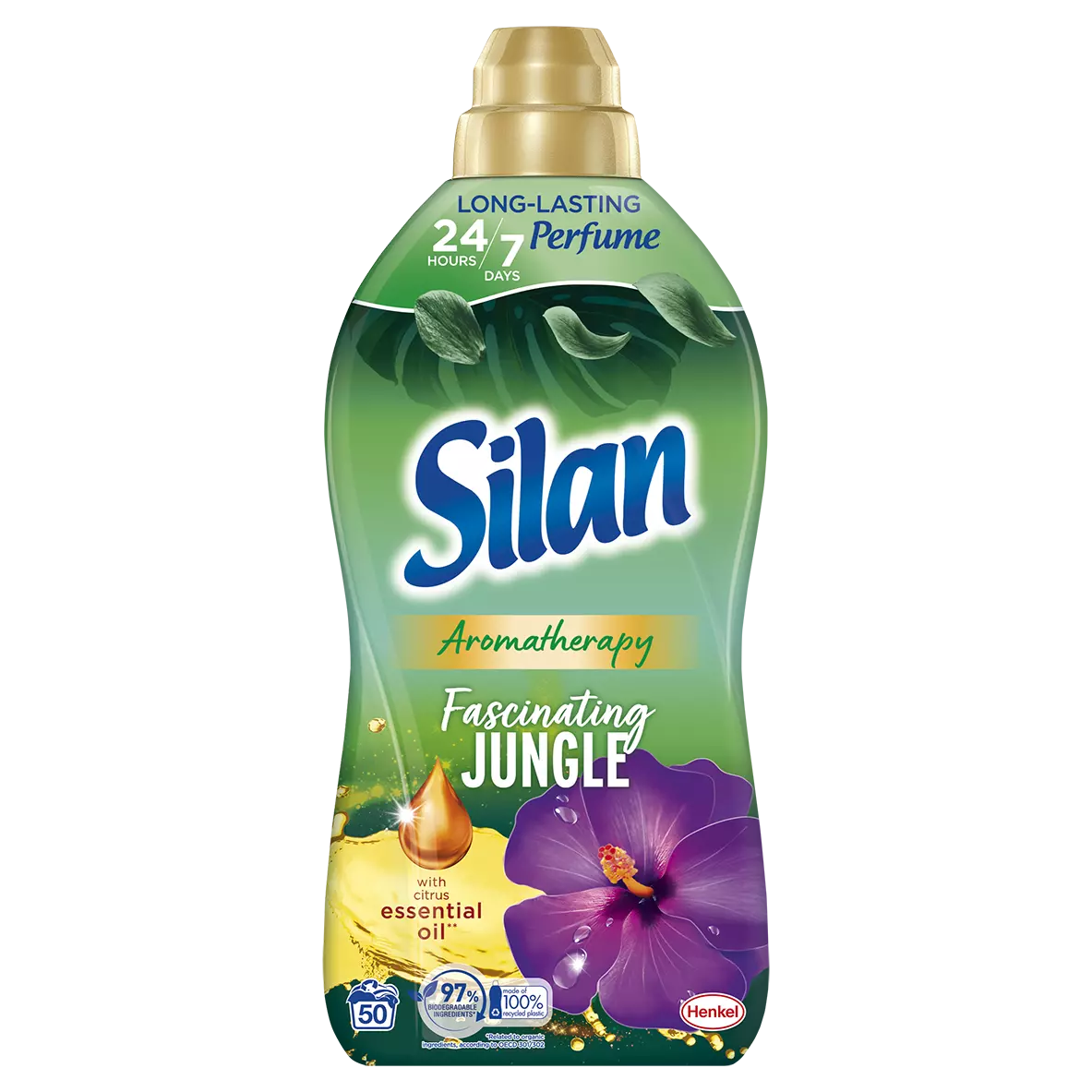 Парфюмерная композиция ополаскивателя Silan Ароматерапия Удивительные Джунгли с эфирным маслом лимона придают Вашей одежде вдохновляющий аромат в течение всего дня. Кроме того, Silan уменьшает электризацию вещей и облегчает глажку. Наслаждайтесь ощущением деликатно мягкого белья и насыщенного долговременного аромата во время каждой стирки из Silan.
