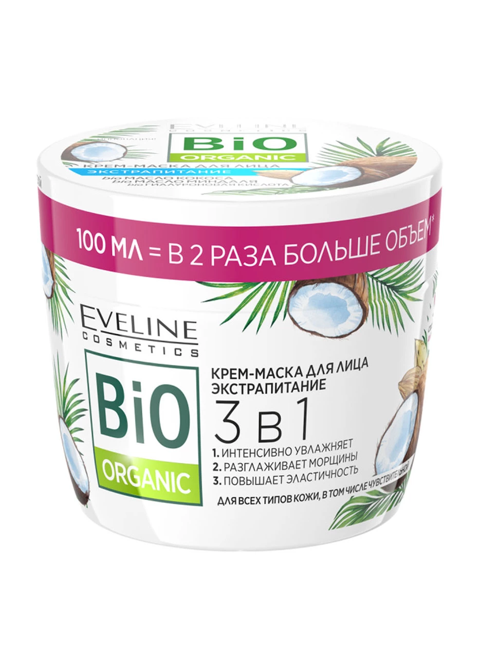 Крем-маска для лица 3в1 Eveline Bio Organiс Экстра-питание 100 мл (5903416022541)