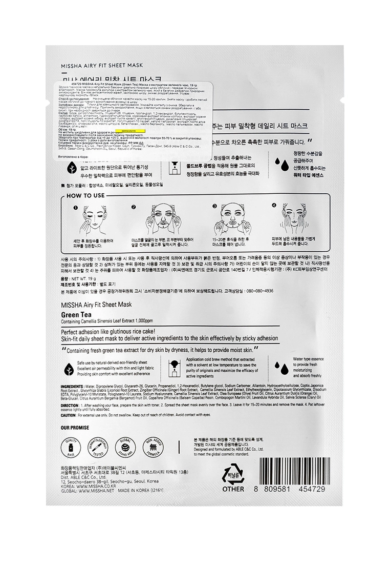 Маска для лица с экстрактом зеленого чая Missha Airy Fit Green Tea 19 г (8809581454729)