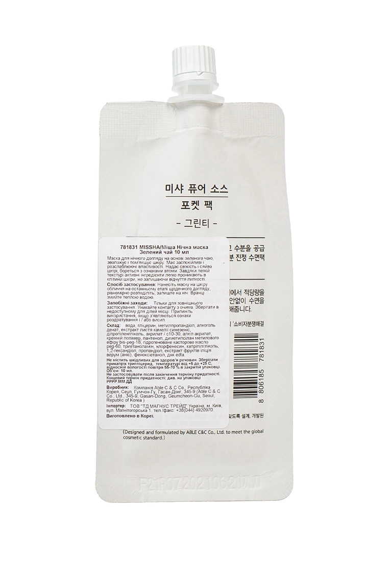 Маска ночная с экстрактом зеленого чая Missha Pure Source Pocket Pack Green Tea 10 мл (8806185781831)