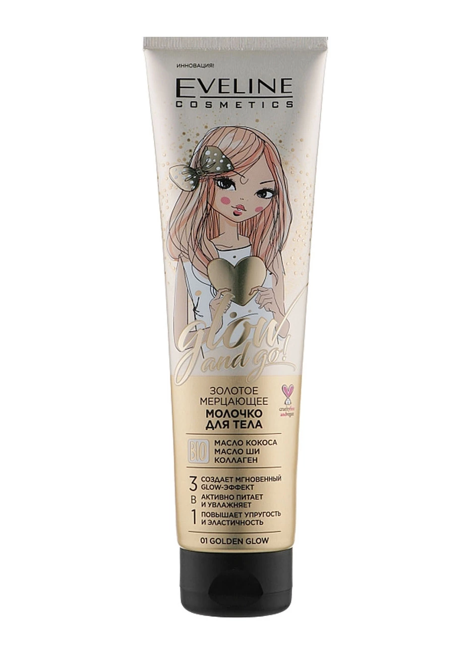 Мерцающее молочко для тела Eveline Cosmetics Glow And Go Golden Glow Золотое 3в1 150 мл (5903416028178)