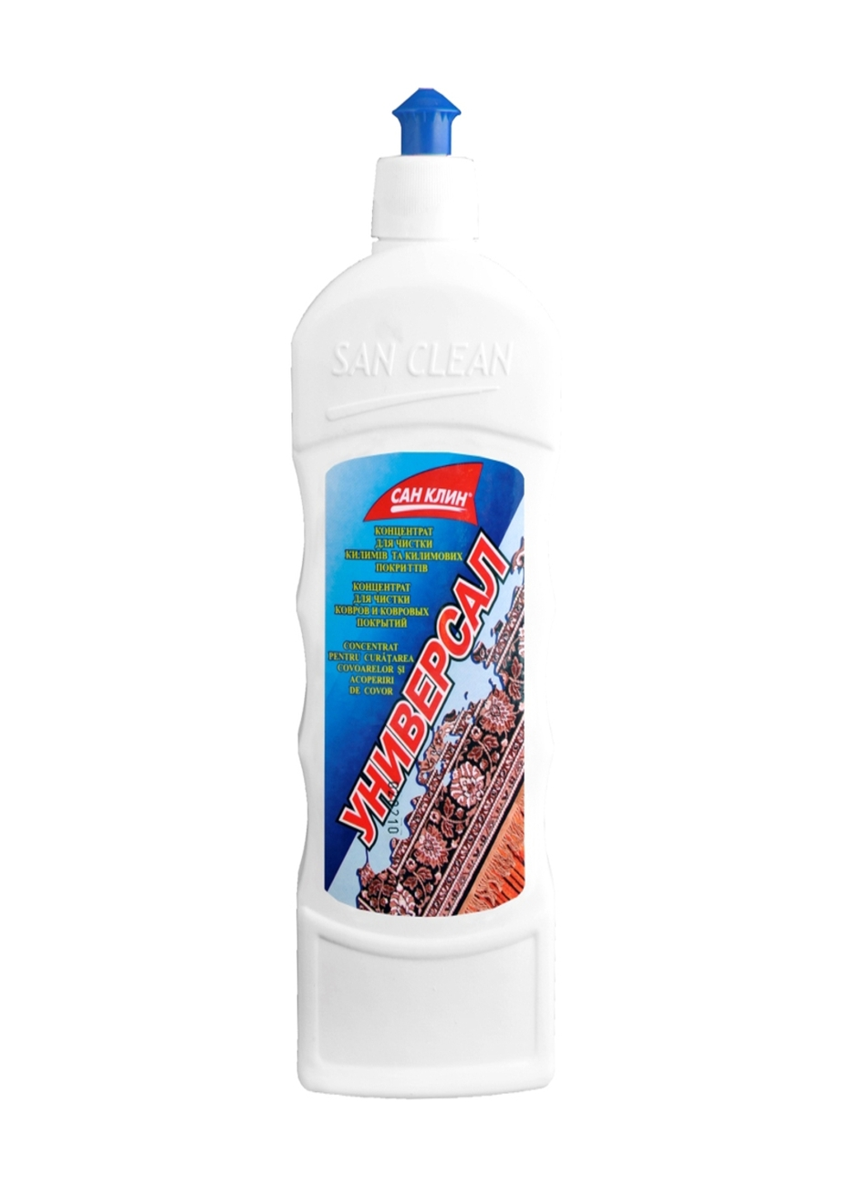 Для глубокой и тщательной очистки ковров используйте моющее средство «Универсал» ТМ «САН КЛИН». Жидкость также подходит для удаления различных загрязнений с мягкой мебели и обивки салонов автомобилей. Благодаря сбалансированному составу средство превосходно очищает, освежает цвет, уничтожает болезнетворные микроорганизмы, которые могут жить и размножаться в волокнах ткани. Продукт снижает степень повторных загрязнений, создавая специальный защитный слой. Эффективно устраняет неприятные запахи. Безвреден для здоровья человека.