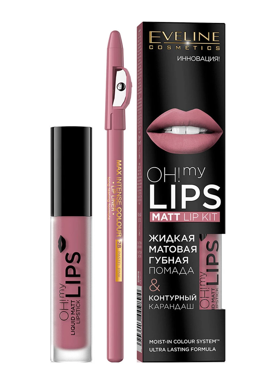 Набор Eveline Матовая помада №09 Oh My Lips 4.5 мл + Контурный карандаш для губ Max Intense Colour 28-Pastel Pink 10 г (5903416009894)