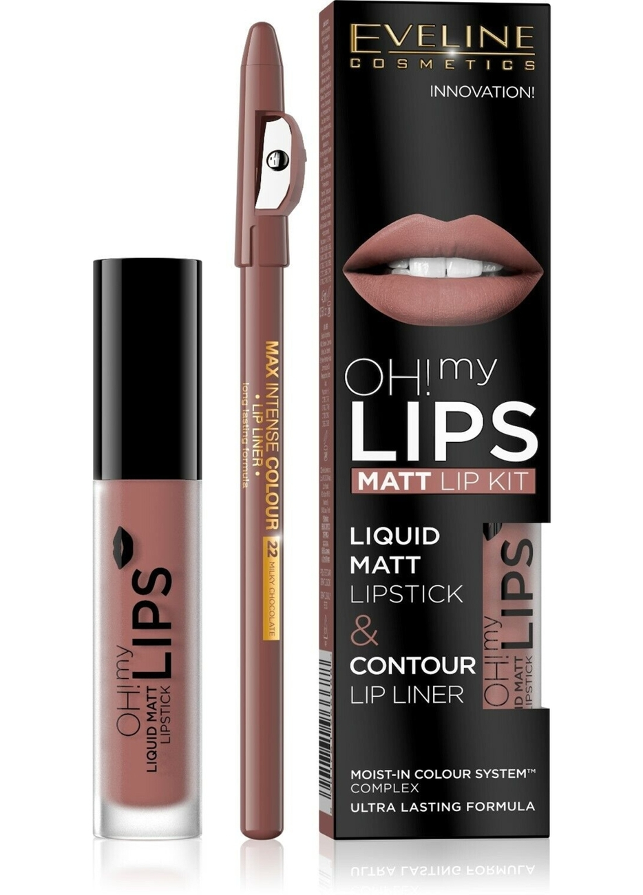 Oh! my LIPS - это набор идеально подобранных косметических средств для макияжа губ: жидкая матовая губная помада и контурный карандаш того же цвета. Формула, обогащённая витамином E и комплексом MOIST-IN COLOUR SYSTEM, обеспечивает оптимальный уровень увлажнения. Стойкий, насыщенный микропигментами состав помады гарантирует губам превосходное покрытие на несколько часов. Удобный аппликатор обеспечивает равномерное распределение помады, в течение нескольких секунд придавая макияжу идеальное матовое завершение. Инновационный контурный карандаш с гладкой кремовой формулой позволяет идеально моделировать и точно подчеркнуть линию губ, а также заполнить контур цветом.