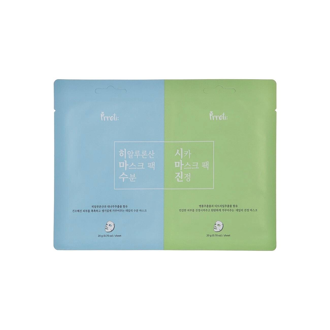 Набор масок для лица Prreti Mask Pack Cica + Mask Pack Hyalulonic Acid 20 г х 2 шт (8809541198915)