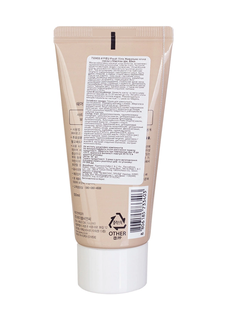Ночная маска с маслом ши Apieu Fresh Mate Shea Butter Mask, 50 мл (8806185733403)