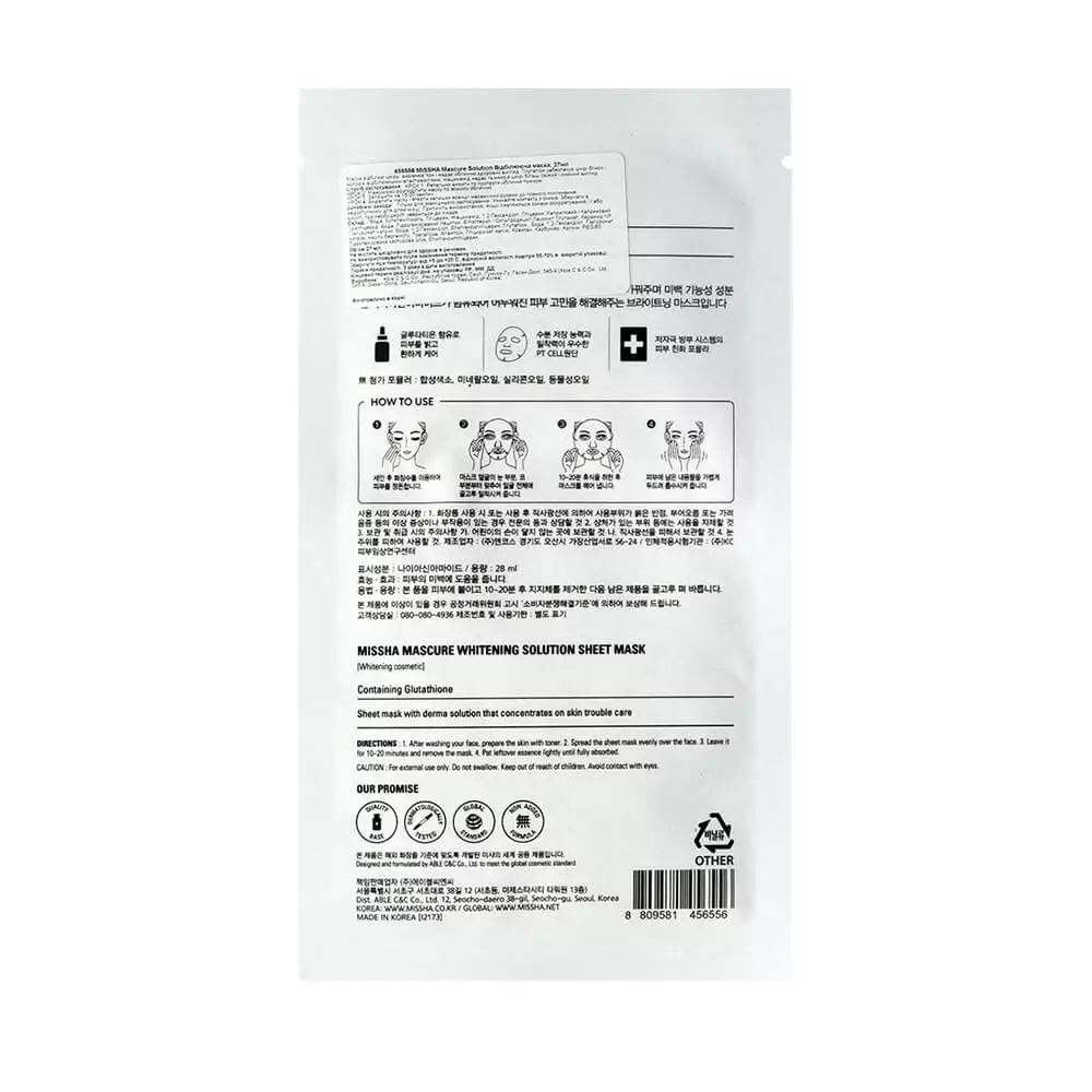 Осветляющая маска с глутатионом Missha Mascure Whitening Solution Sheet Mask Glutathione 27 мл (8809581456556)