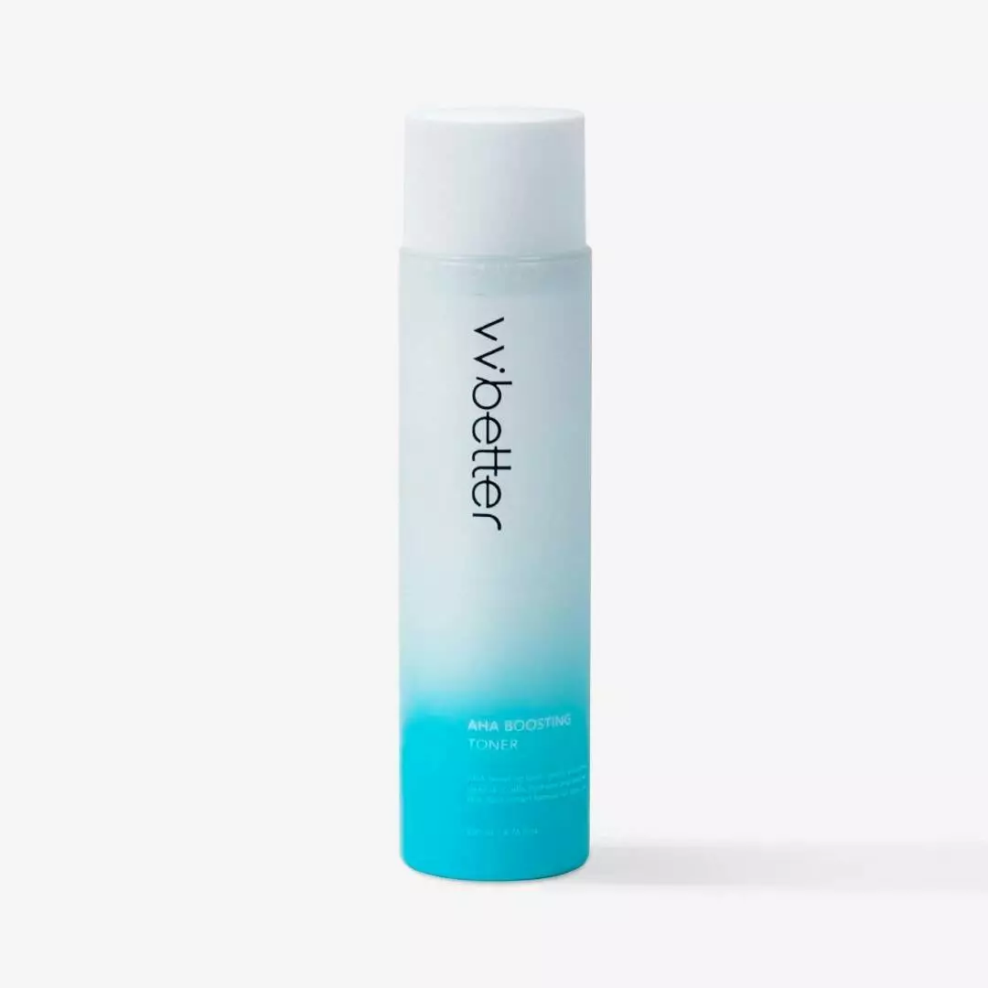 Мягкий тонер vvbetter AHA Boosting Toner с АНА-кислотами с содержанием гликолевой и молочной кислоты мягко отшелушивает и смягчает ороговевший слой эпидермиса, прекрасно увлажняет и придает коже здоровое сечение. Благодаря уровню рН 5,5 не вызывает раздражение и покраснение даже у обладателей тонкой чувствительной кожи.