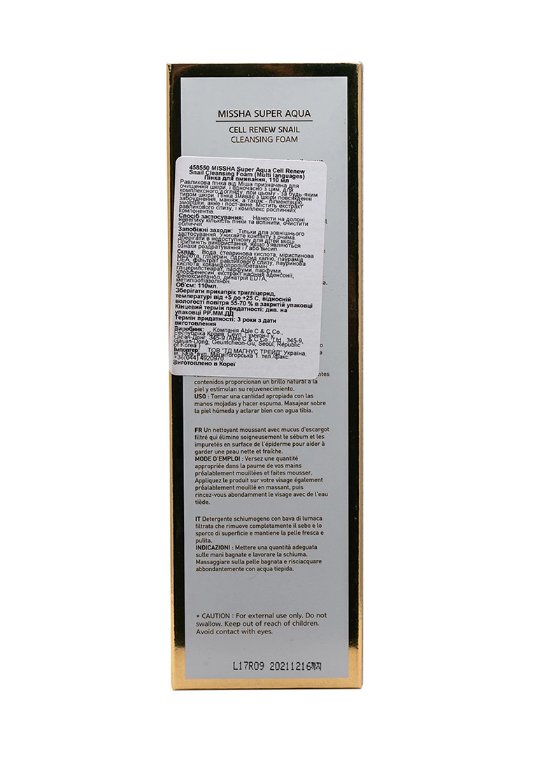 Пенка для умывания Missha Super Aqua Cell Renew Snail Cleansing Foam, 100 мл