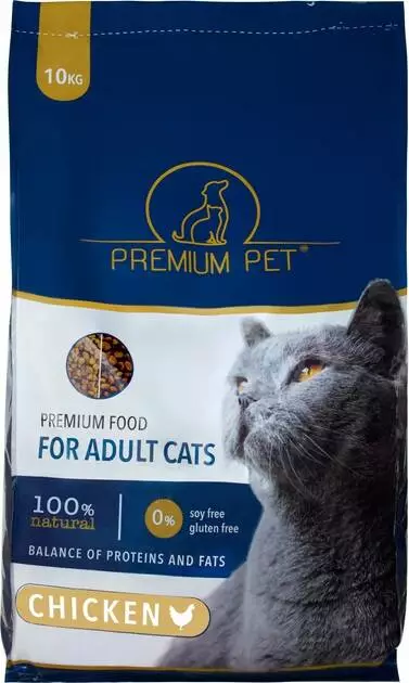 Полноценный сухой корм PREMIUM PET для кошек с курицей 10 кг (4820232351338)