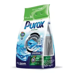 Purox Universal - порошок для стирки тканей во всех видах стиральных машин и для ручной стирки. Подходит для стики как цветных тканей, так и белых. Современный способ концентрирования порошка влияет на экономичность использования. Порошок содержит ингредиенты, которые защищают стиральную машину от осаждения камня, тем самым нет необходимости применять средства для удаления водного камня.
