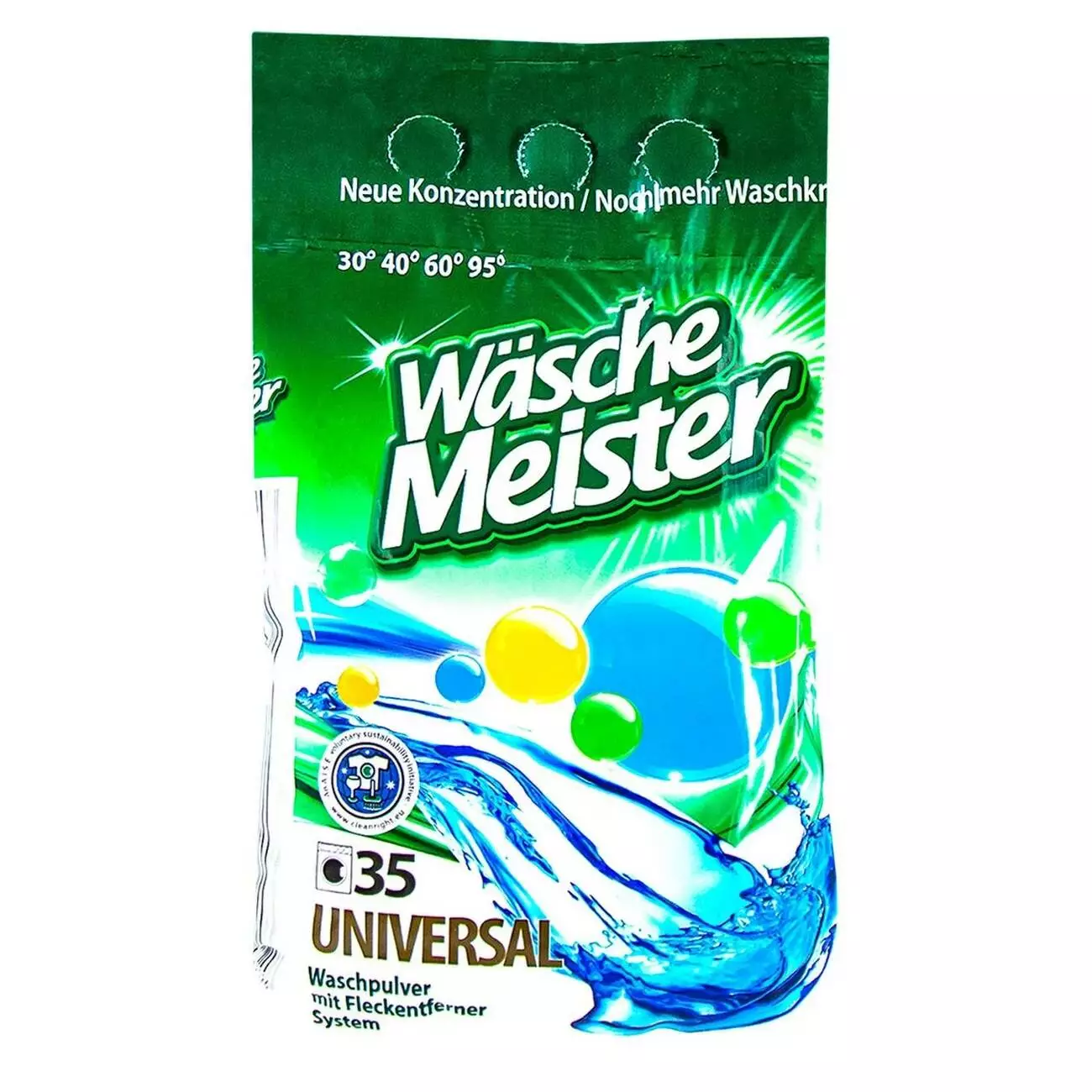 Стиральный порошок Wasche Meister не содержит фосфатов. Это мощный и очень эффективный стиральный порошок. Его можно использовать во всех типах стиральных машин, а также для ручной стирки. Применяется в температурном режиме от 30°С до 90°С. Благодаря особым компонентам, он не только справляется с задачей удалить пятна, но и заботится о сохранении цвета ваших любимых вещей.