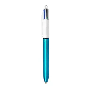 Элегантная шариковая ручка BIC 4 Colours Shine имеет гладкий овальный корпус цвета голубой металлик.