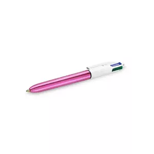 Элегантная шариковая ручка BIC 4 Colours Shine имеет гладкий овальный корпус цвета розовый металлик.
