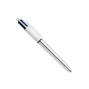 Элегантная шариковая ручка BIC 4 Colours Shine имеет гладкий овальный корпус цвета серебристый металлик.