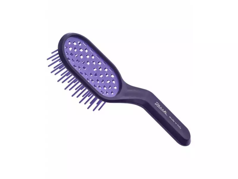 Щетка от бренда Janeke имеет современный запатентованный дизайн, сочетающий стиль и функциональность. Ее форма, похожая на пчелиные соты, позволяет безупречно пропускать горячий воздух фена. Благодаря этим отверстиям тепло быстро проходит через щетку, что значительно ускоряет процесс сушки волос по сравнению с закрытыми брашами или другими изделиями со сплошным основанием.