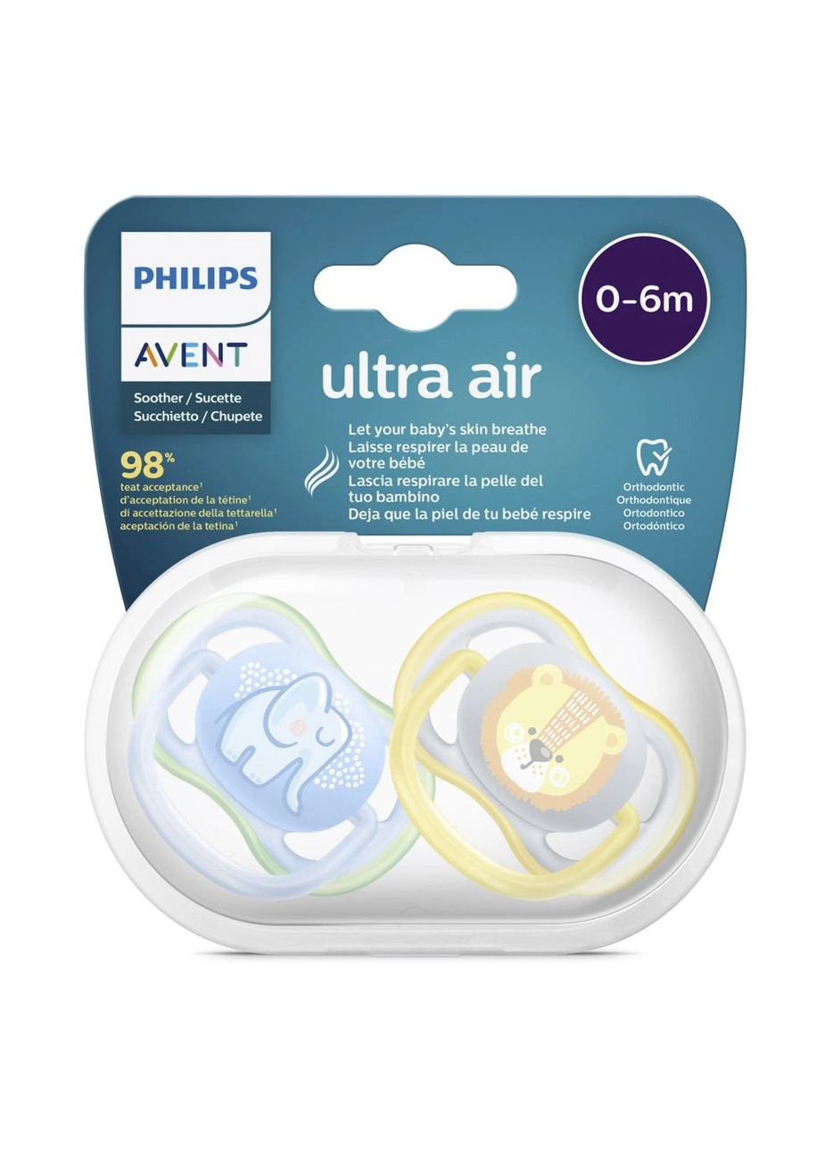 Силиконовая пустышка philips avent ultra air "animal" 0-6 мес для мальчиков 2 шт (scf085/01) (8710103942689)