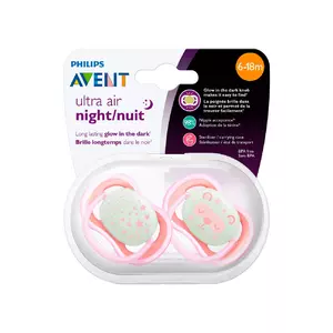 Силиконовая пустышка philips avent ultra air ночная 6-18 мес для девочек 2 шт (scf376/22) (8710103901839)
