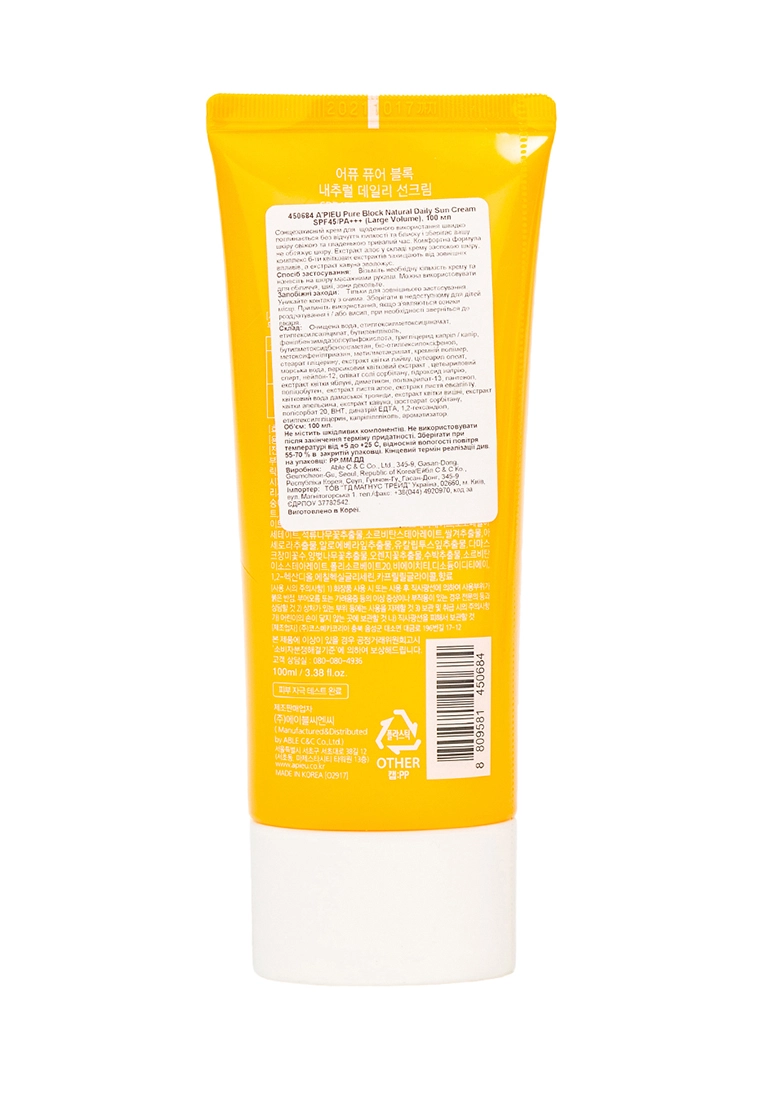 Солнцезащитный крем Apieu Pure Block SPF45 /PA +++, 100 мл (8809581450684)