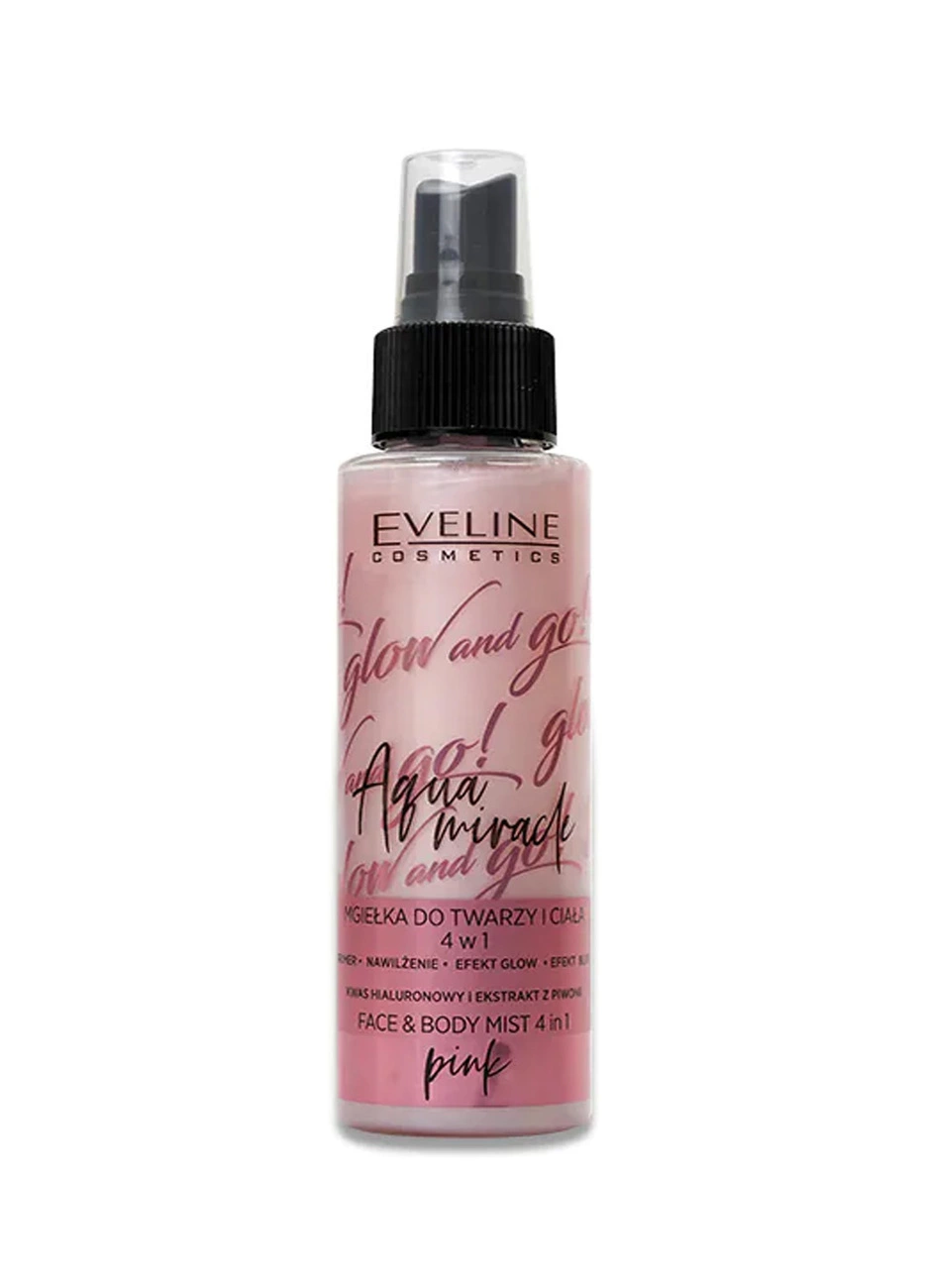 Eveline Glow&Go Aqua Miracle Face Mist 4в1 Pink – это уникальный легкий спрей для лица, а также тела, одновременно сочетающий четыре функции: