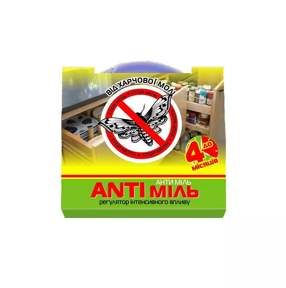Борьба с пищевой молью – актуальная проблема для многих хозяек. Решить ее качественно и эффективно поможет универсальное средство ANTI моль. Продукт представляет собой регулятор интенсивного воздействия, время действия которого составляет 4 месяца. Безопасный для здоровья человека, удобен в использовании.
