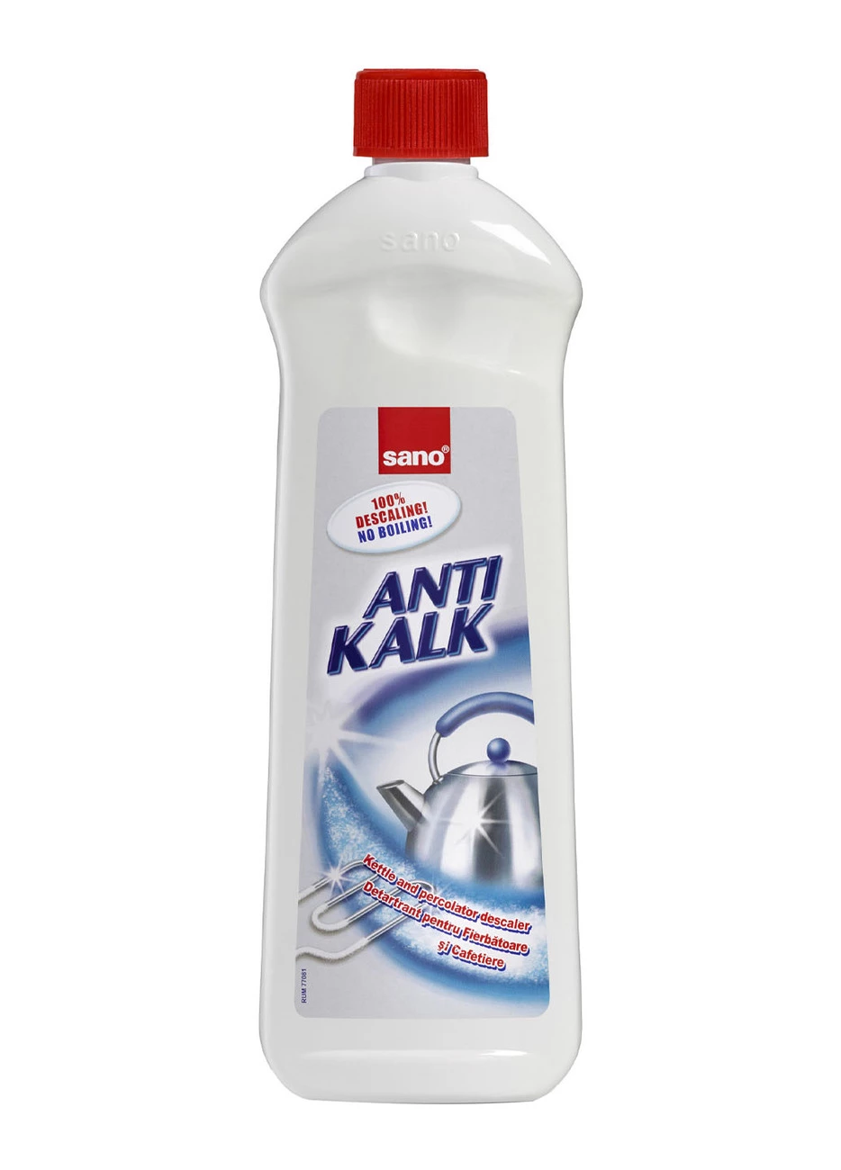 Sano Anti Kalk Kettle — эффективно удаляет накипь в электрических чайниках, кофеварках и кофейных аппаратах. С легкостью очищает краны, сантехнику, керамическую плитку, предметы из пластмассы и стекла, горизонтальные поверхности и др. На основе пищевой кислоты.