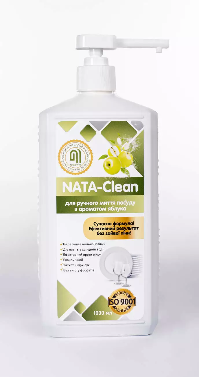 Средство моющее NATA-Clean для ручной мойки посуды с ароматом яблока, флакон 1000 мл, премиум (4823112600946)