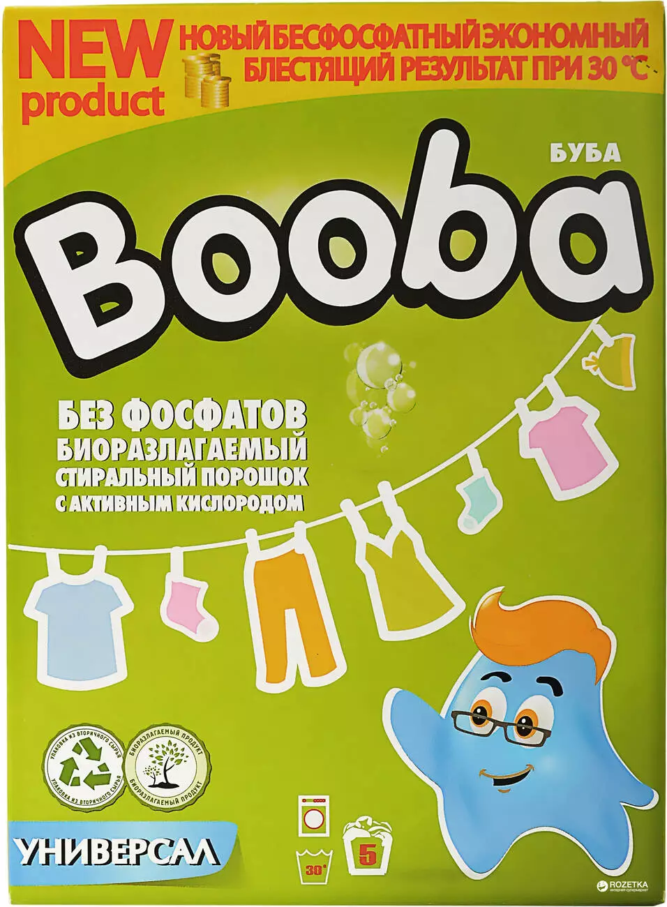 Стиральный порошок Booba Универсал 350 г биологически разлагается и не вредит природе. Не содержит фосфатов, является безопасным для здоровья вашей семьи.