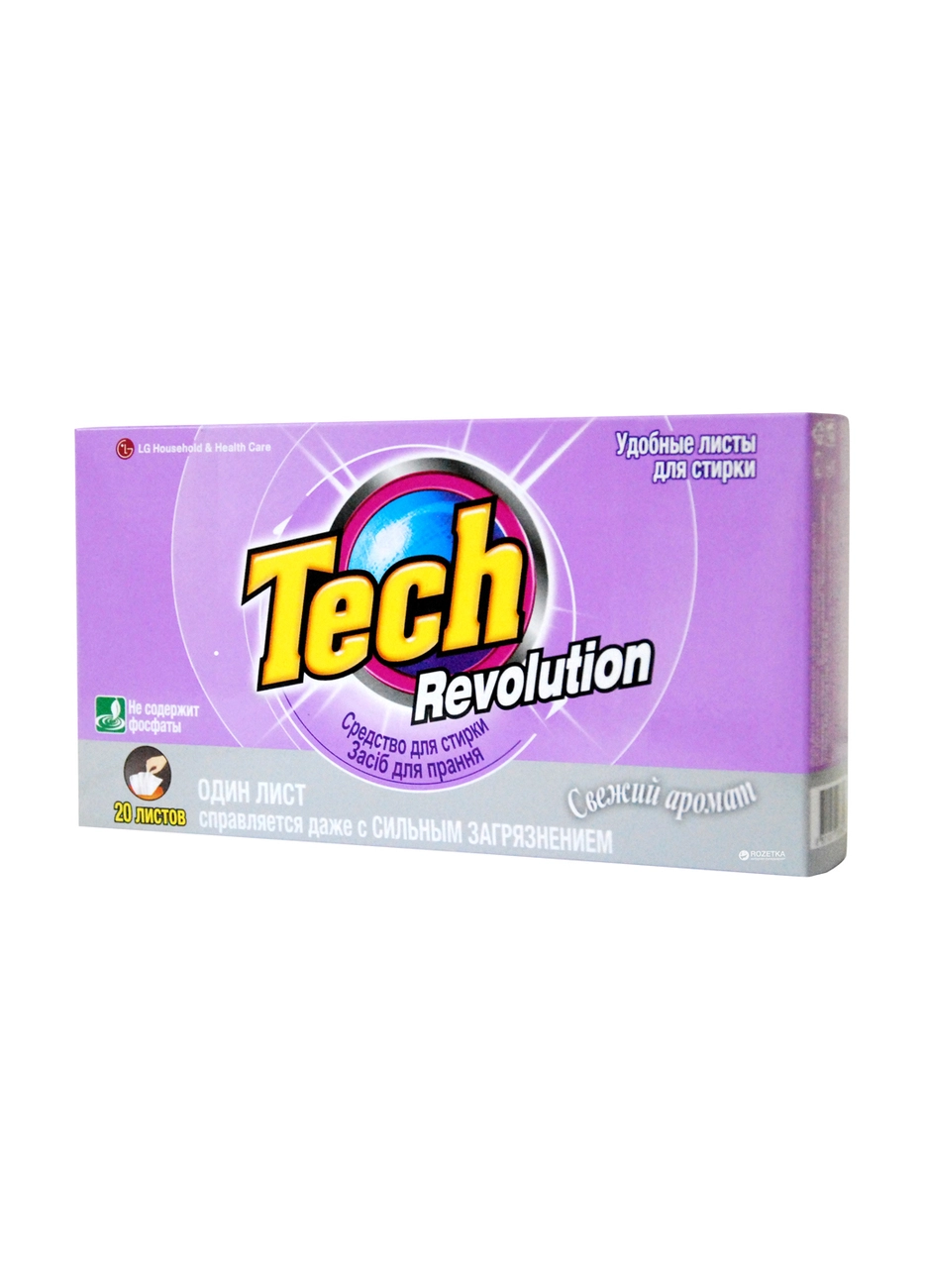LG Tech Revolution — новый инновационный формат стирального порошка. Средство в виде листов подходит для стирки цветного и белого белья, изделий из натуральных, синтетических и искусственных тканей. Порошок прекрасно отстирывает загрязнения, снимает статическое электричество и придает вашему белью аромат свежести.