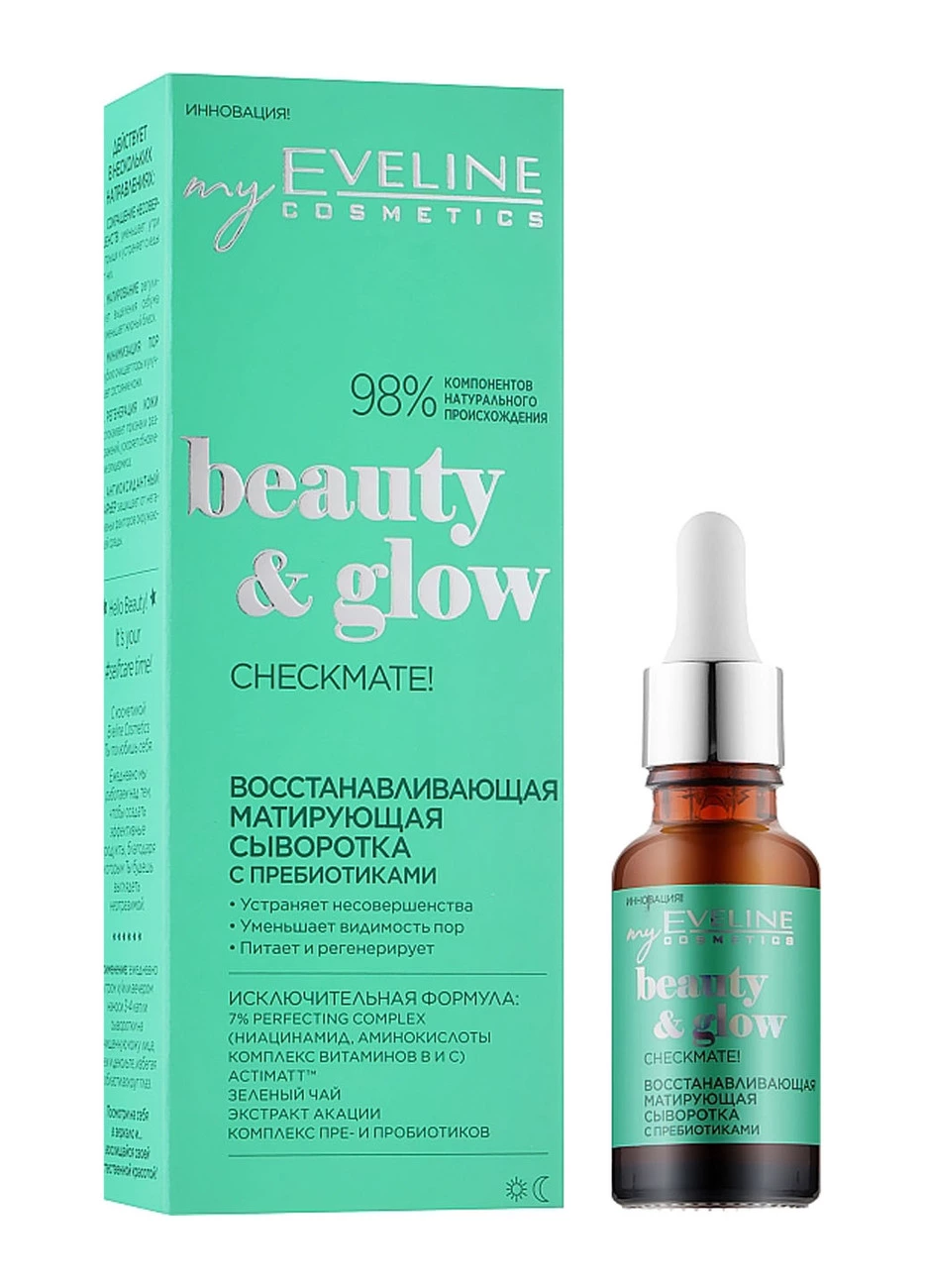 Сыворотка с пребиотиками Eveline Cosmetics Beauty & Glow Checkmate! Serum Восстанавливающая и матирующая 18 мл (5903416028123)