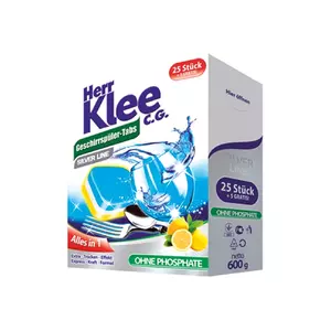 Таблетки для посудомоечной машины Herr Klee Silver Line эффективно удаляют любые загрязнения с посуды, оставляют его чистым и блестящим. Эти таблетки защищают стекло и придают ему особый блеск. Средства для посудомоечных машин Silver Line также успешно защищают металлическую посуду и столовые приборы от коррозии. Таблетки Herr Klee также предотвращают образование камней в наиболее важных частях посудомоечной машины, продлевая срок ее службы. Они смягчают воду и придают устройству приятный свежий запах.