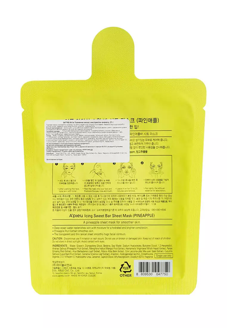 Тканевая маска с экстрактом ананаса Apieu Icing Sweet Bar Sheet Mask Pineapple, 21 г (8809530047750)