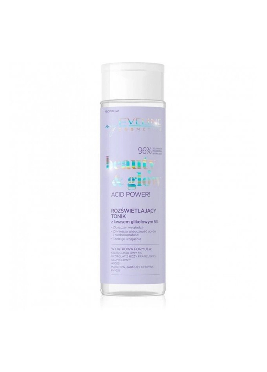 Тоник, придающий сияние 5% гликолевой кислоты ACID POWER! серии BEAUTY&GLOW подходит для всех типов кожи, включая жирную и склонную к появлению несовершенств и пигментации.