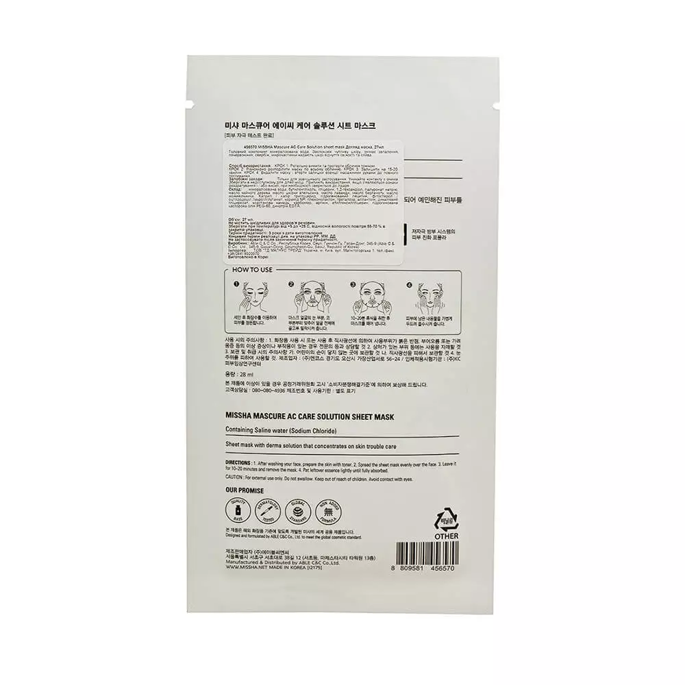 Увлажняющая маска для лица Missha Mascure AC Care Solution Sheet Mask Saline Water 27 мл (8809581456570)