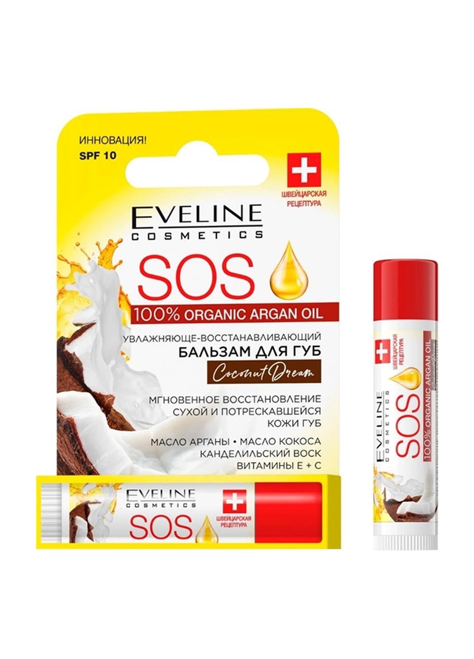 Увлажняющее-восстанавливающий бальзам для губ Eveline SOS 100% Organic Argan Oil Coconut Dream 4.5 мл (5903416017035)