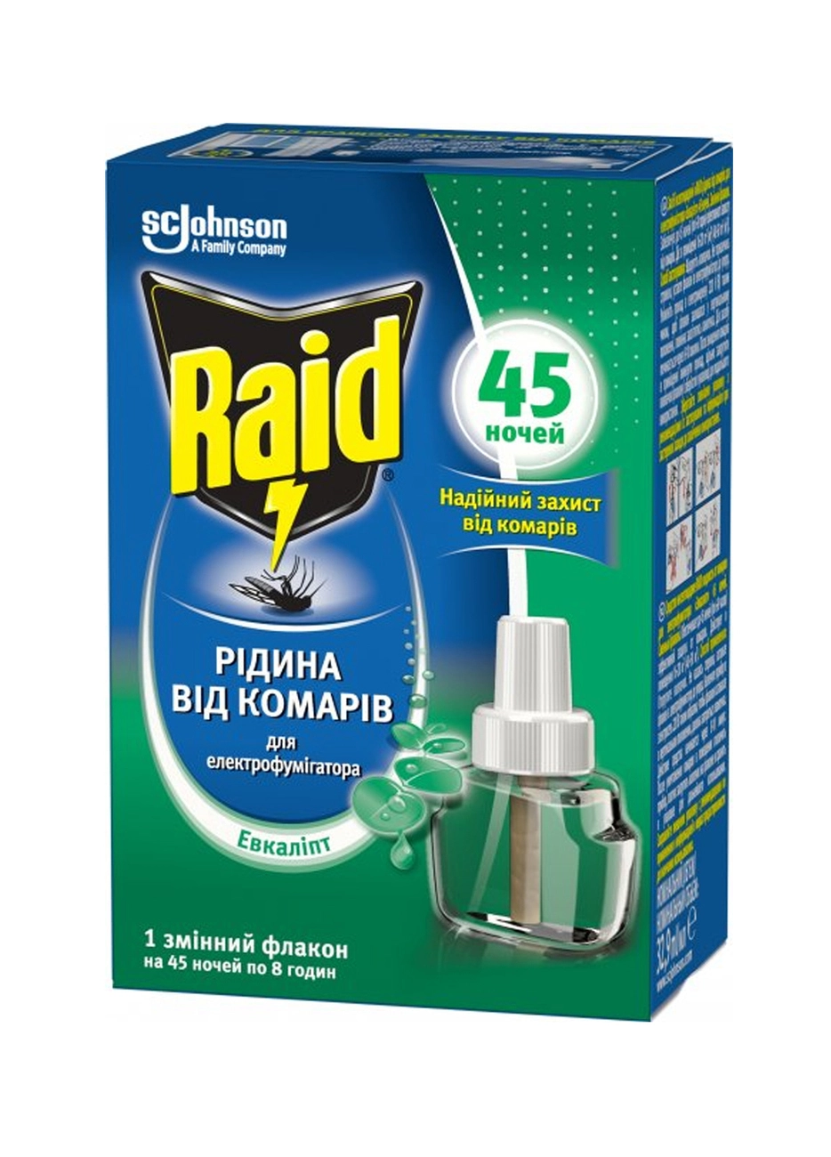 Жидкость от комаров для электрофумигаторов Raid 45 ночей с эвкалиптом (4620000431763)