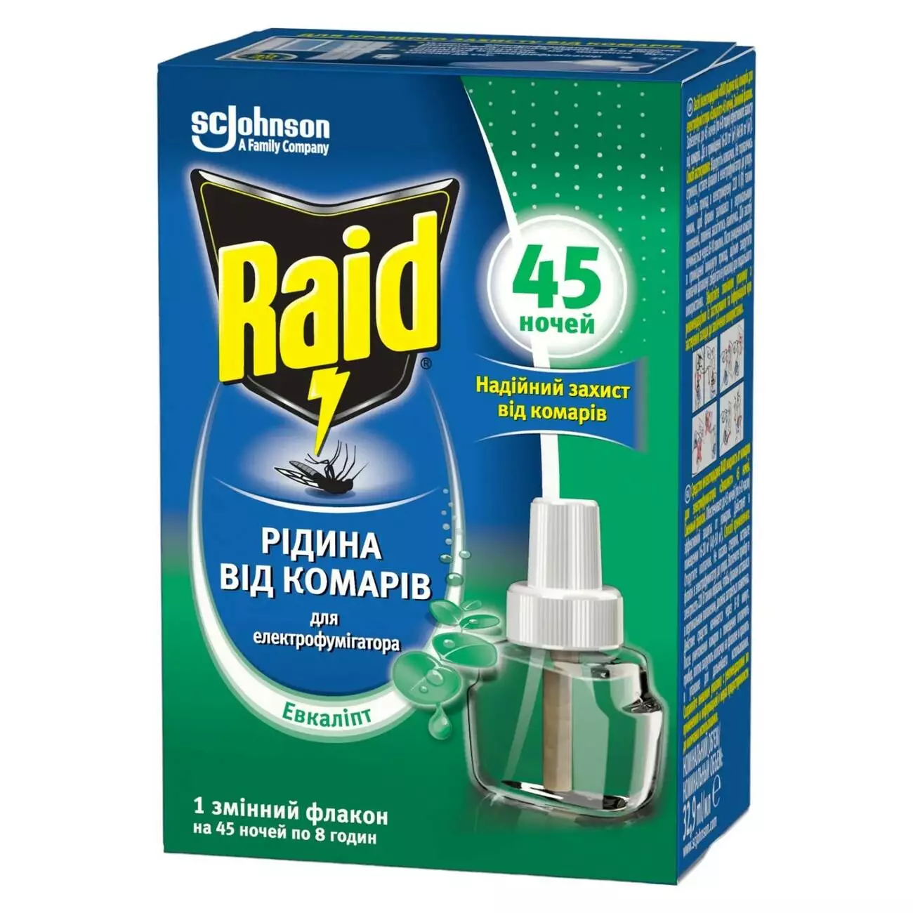 Жидкость от комаров для электрофумигаторов Raid 45 ночей с эвкалиптом (5000204329100)