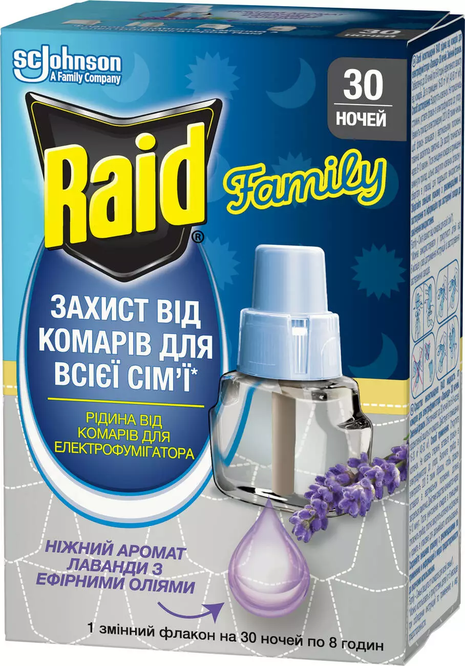 Жидкость Raid 30 ночей против комаров для электрофумигатора Лаванда (5000204343724)