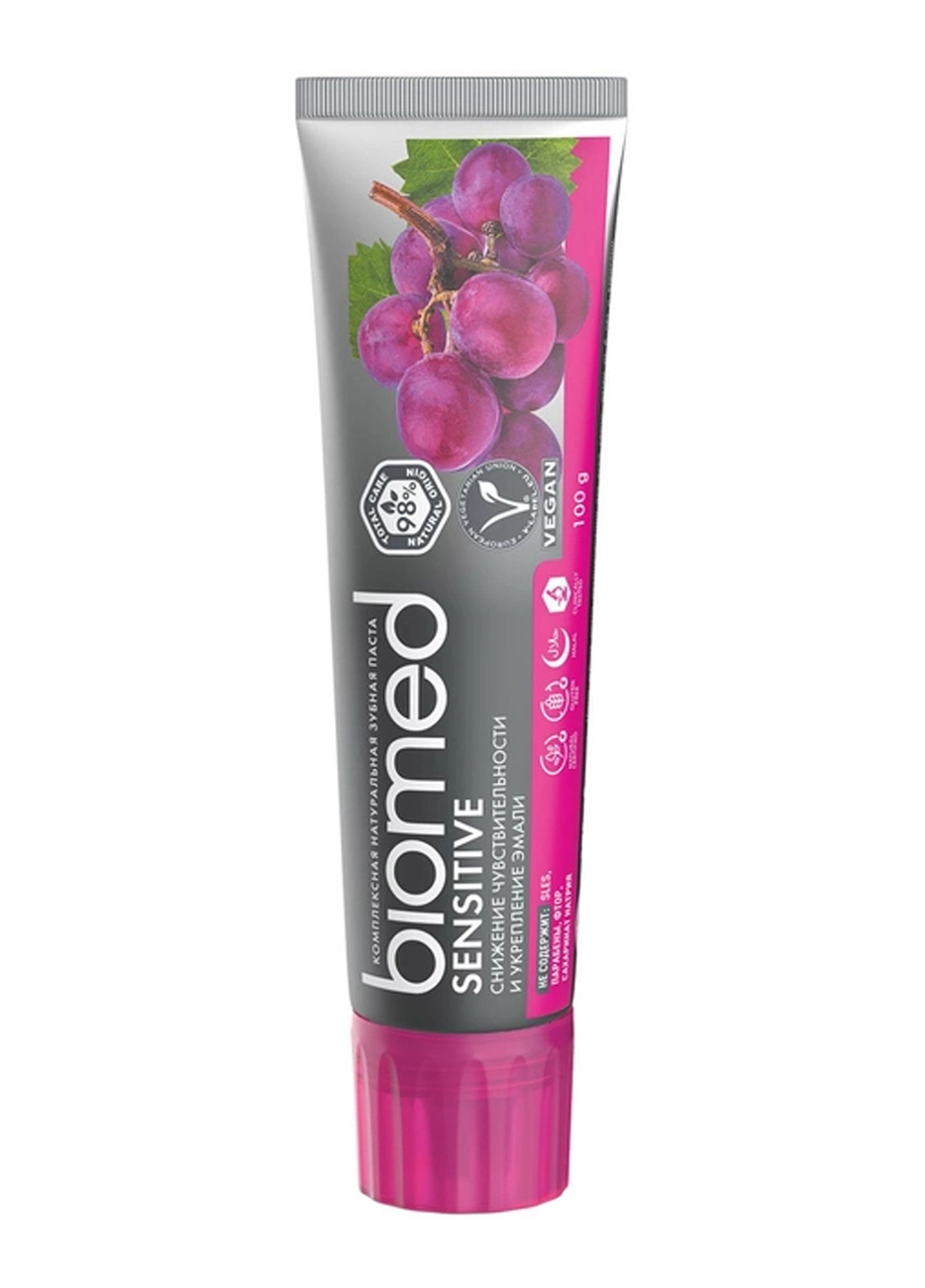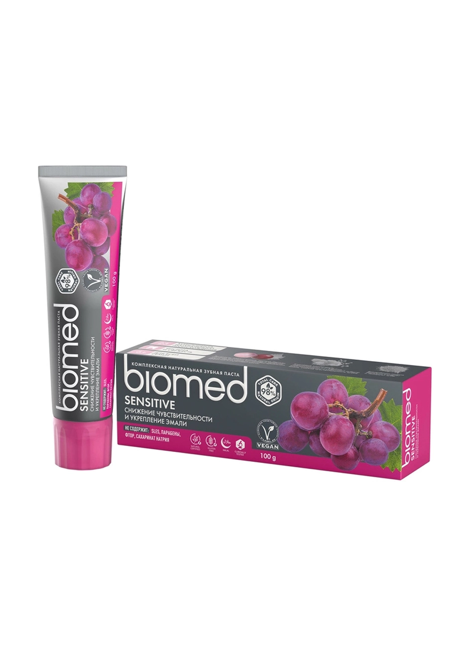 Зубная паста BioMed Sensitive Антибактериальная для укрепления эмали и снижения чувствительности Виноград 100 г (7640170370072)
