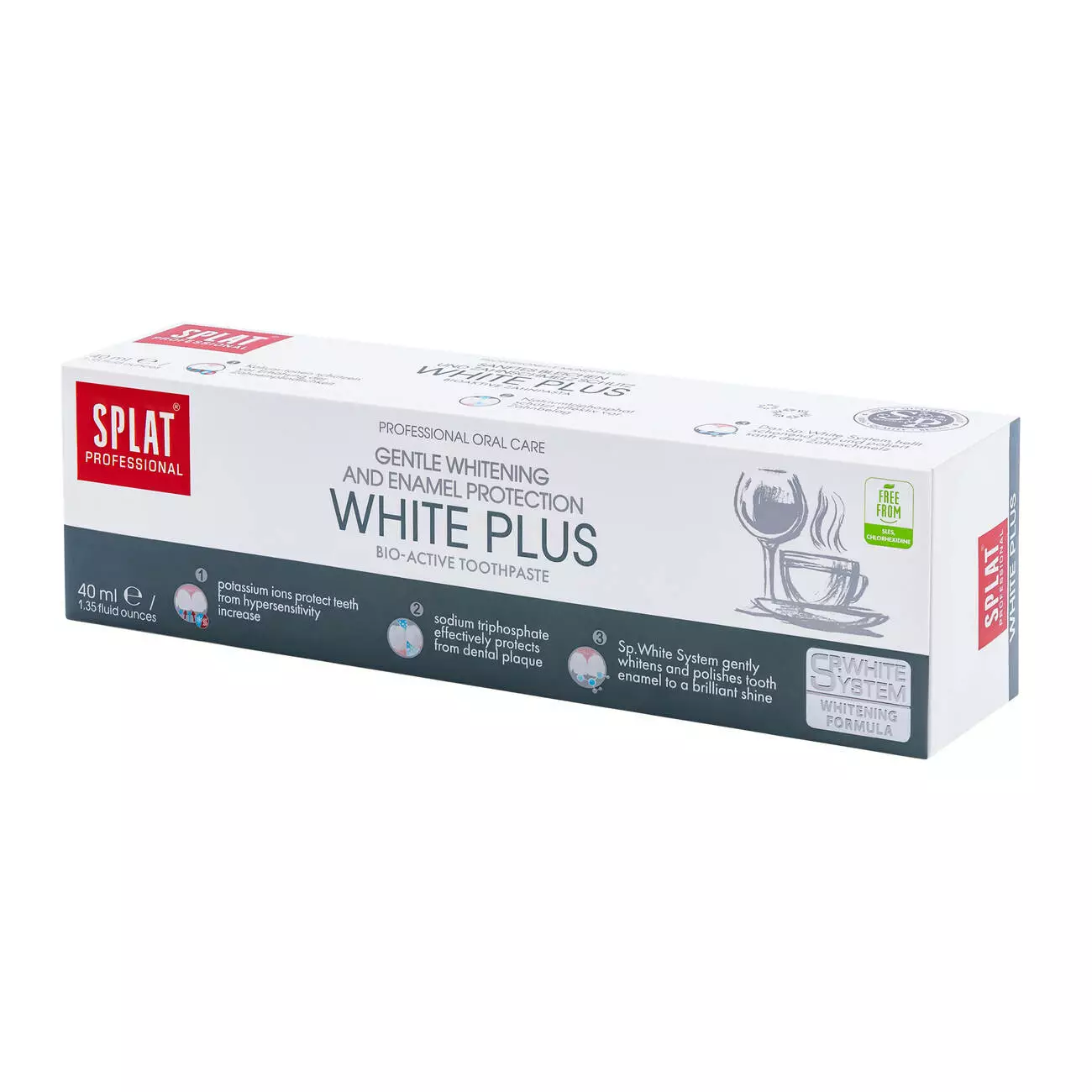 Любители чая, кофе, сигарет или вина не понаслышке знают, что все эти продукты оставляют видимый след на поверхности зубов. Чтобы избавиться от этих внешних проявлений, сделать свою улыбку белоснежной, а дыхание свежим, воспользуйтесь специальной пастой от Splat Professional White plus. Она обогащена множеством активных компонентов, которые в сочетании с натуральными природными экстрактами эффективно устраняют все загрязнения, а также заботятся о здоровье зубов и десен.